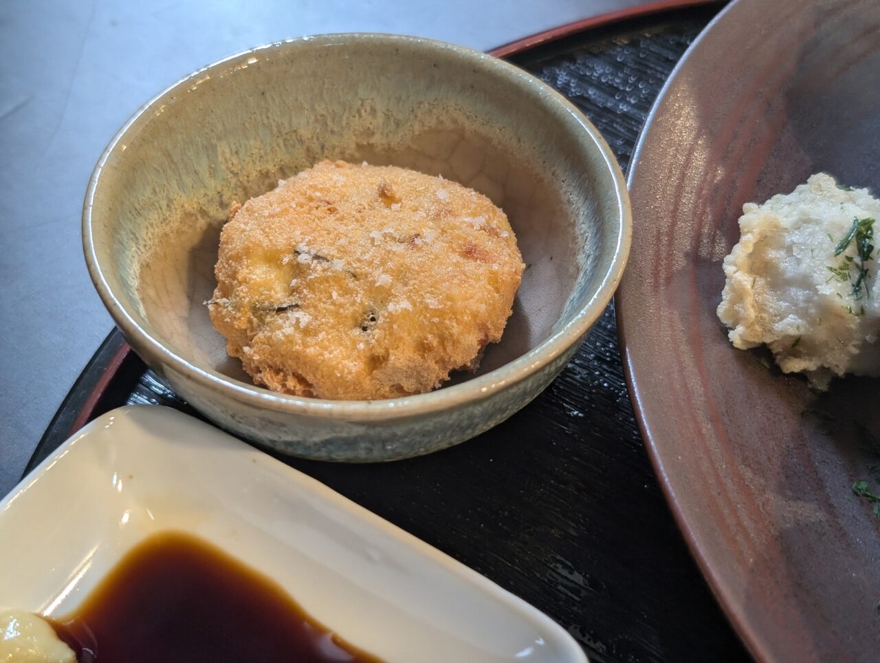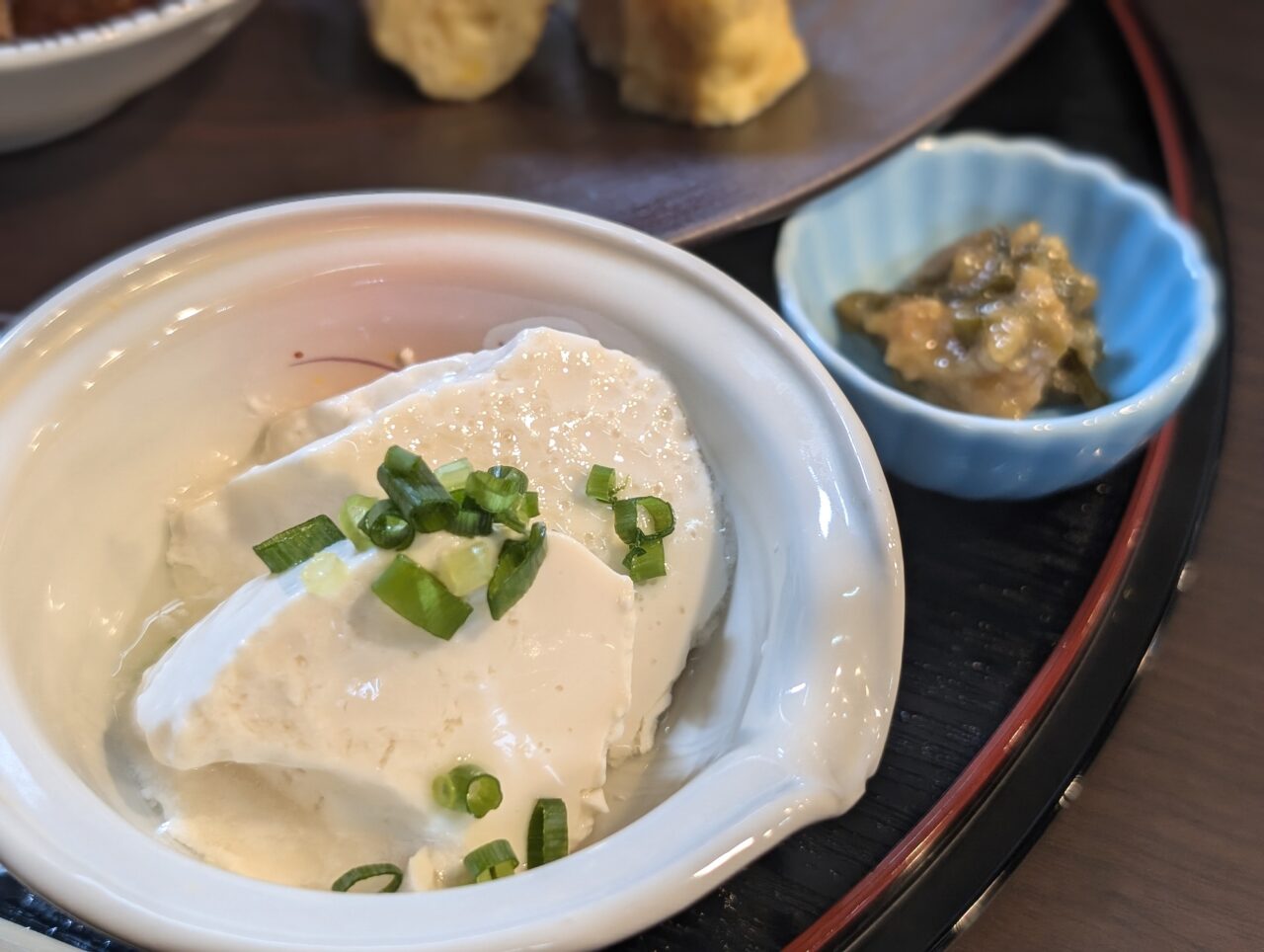 別皿に添えられているお豆腐も手作りです。がんもは出来立てなので、外はアツアツで口に入れるとじゅわ~っと旨みが広がります。