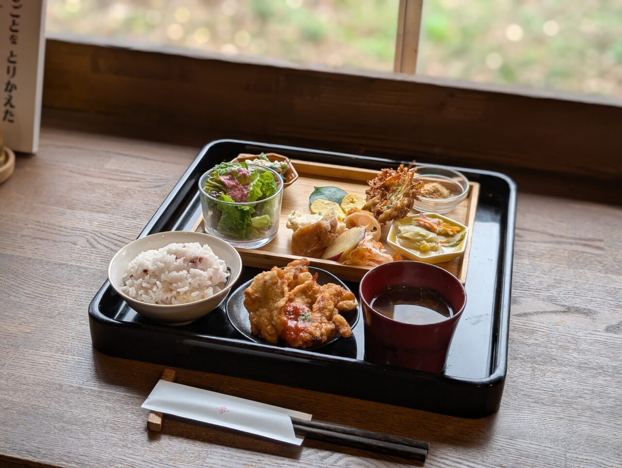とり天は菊芋と一緒に揚げられていて、ジューシーな鶏肉とほんのり甘みのあるシャキシャキとした食感の菊芋の組み合わせは楽しい味わいでした。